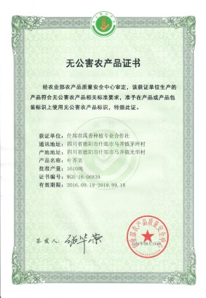 無公害農(nóng)產(chǎn)品證書
